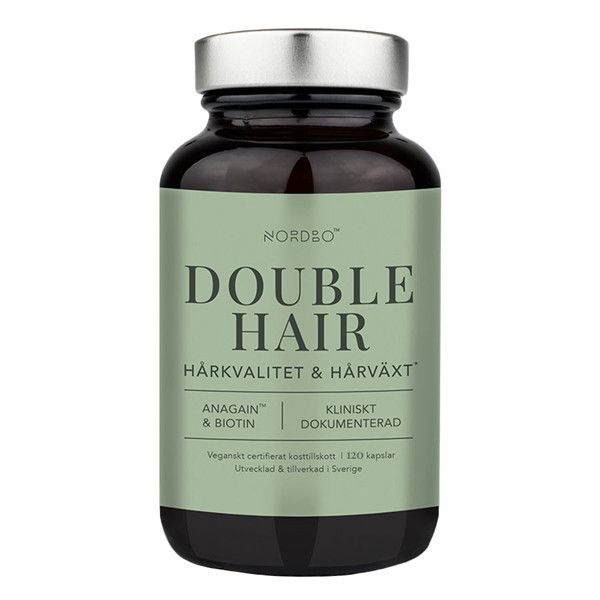 Nordbo Double Hair je velmi precizně zacílený doplněk stravy kombinují patentovaný extrakt AnaGainTM z BIO hrachových klíčků s vysokou dávkou biotinu. Vlastnosti těchto dvou složek jsou synergní a souvisejí se stimulací vlasových folikul, redukcí ztráty vlasů a jejich kondicí. AnaGainTM je speciální extrakt z hrachový klíčků, které jsou bohaté na složky aktivující buňky ve vlasových folikulech. Obnovují v nich mikrocirkulaci živin. Vlastnosti biotinu souvisejí s produkcí keratinu, který zvyšuje kvalitu vlasů. AnaGainTM byl testován v klinické studii s jedinci trpícími středně závažným vypadáváním. Po dvou měsících se snížila ztráta vlasů o 37 % a došlo k viditelnému zpevnění vlasových vláken.
